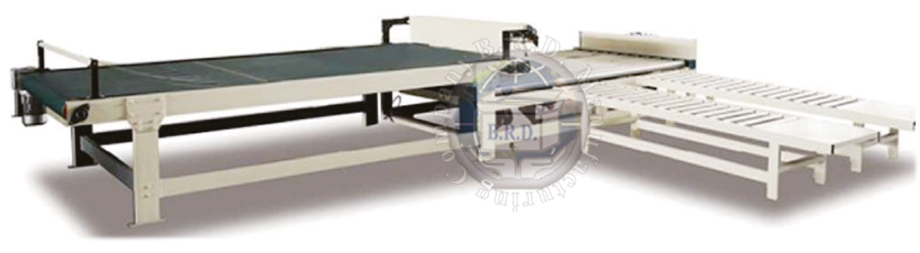 Motorized transverse output, and automatic stacking and collecting cardboard Longitudinal conveying cardboard adopts wide conveyor belt.